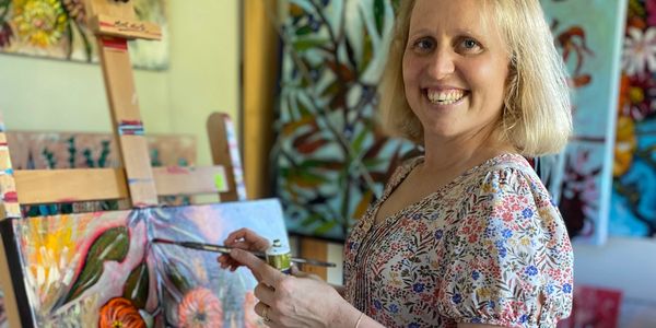 I use the boldness of acrylic paint to celebrate Aussie flowers and birds.